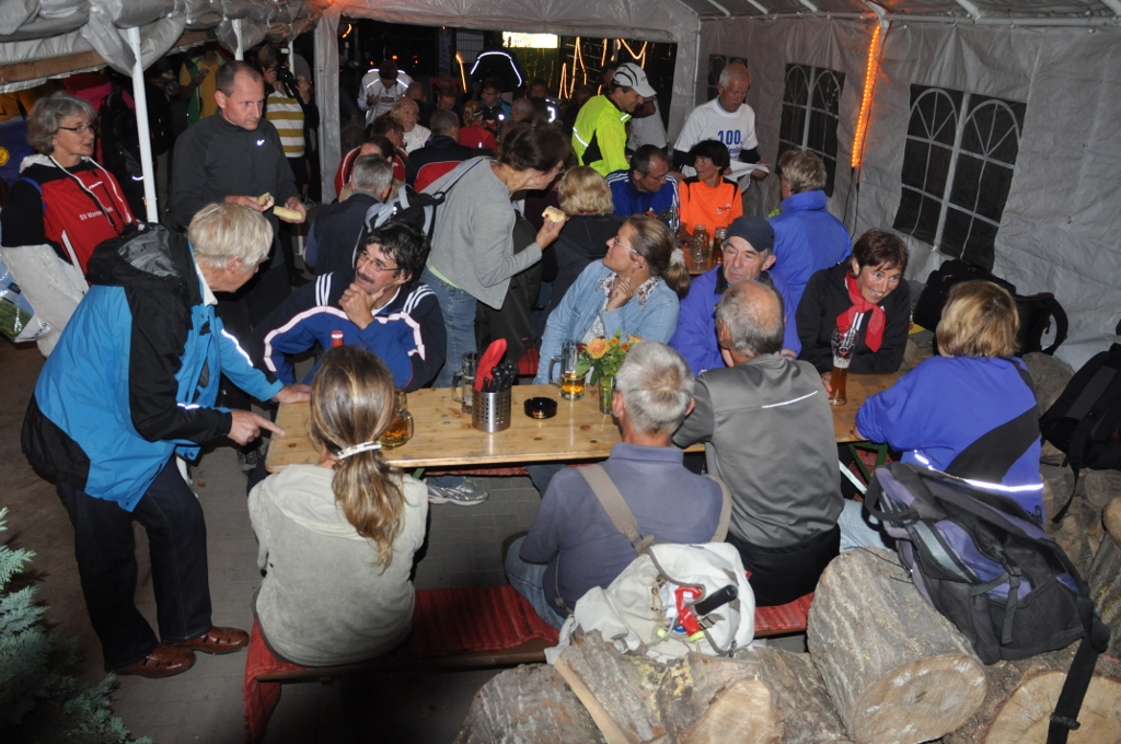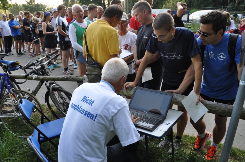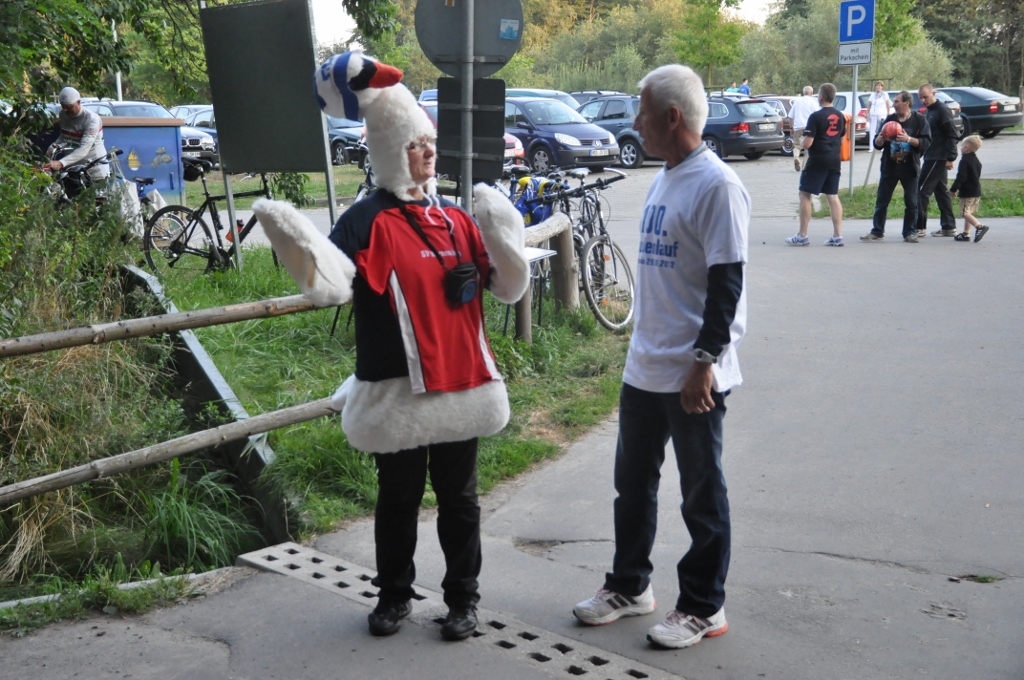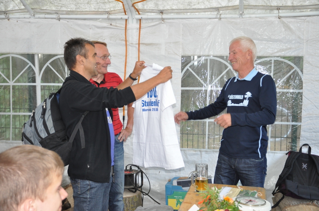 100. Stundenlauf begeisterte Starter und OrganisatorenAlles klappte so, wie es sich die Organisatoren der LG Küstenwald für das Jubiläum erhofft hatten. Bereits am Nachmittag waren viele Starter der ersten Stundenläufe in den achziger Jahren zum “Läufer-Kaffeeklatsch” in die Fuchsbar gekommen. Beispielsweise der 75jährige Baldur Beyer aus Witzin. Er hatte, wie auch einige andere, seine Chronik im Gepäck und konnte damit langsam verblassende Erinnerung auffrischen helfen. Im Stundenlauf erreichte er dann 6.413 m – das war zwar der letzte Platz. Aber eingedenk des Alters und eines künstlichen Hüftgelenkes eine bewunderswerte Leistung auf die er zu Recht stolz war.Sabine und Erhard Pöplow waren extra aus Hamburg zum Jubiläumslauf gekommen. Sabine gehörte zu DDR-Zeiten bei den Frauen zur absoluten Spitze und ließ beispielsweise durch einen 2. Rang beim Berlin-Marathon aufhorchen. Diesmal zeigte sie mit inzwischen auch bereits 65 Jahren, die man ihr wirklich nicht ansieht, mit 10.714 m wie fit man sich halten kann. Die extra für den Lauf gedruckten hundert Startnummern wurden knapp, als das Meldebüro, wie immer lässig am Parkplatz Wilhelmshöhe in freier Natur, eine halbe Stunde vor dem Start öffnete. Aber auch hier funktionierte alles – 97 Läufer gingen an den Start, 75 davon absolvierten die volle Stunde. Hier wurde dann den zahlreichen Zuschauern Laufsport in der vollen Breite geboten. An der Spitze bestimmten Streckenrekordler Mathias Ahrenberg (Post Telekom Schwerin) und der Fiko-Triathlet Karl Magnus Westphal das Tempo. Ahrenberg mußte nach gut einer halben Stunde, wo für ihn 8.755 m notiert wurden, wegen Bauchmuskelkrämpfen passen. Westphal zog weiter durch und konnte mit 16.961 m dem zum Finale stark aufkommenden Vereinsgefährten Matthias Weippert (16.276 m) und Frank Schütz (ESV Lok Neustrelitz – 15.925 m) sicher auf Distanz halten. Als Gesamtzwölfte erreichte die Rostockerin Diana Zolondek das Ziel. Mit 14.274 m gewann sie die Frauenwertung vor Katharina Pap (TC Fiko Rostock - 12.758 m), Sabine Neumann (12.740 m) und Gerlind Michaelis (12.598 m – beide SV Warnemünde). Noch einige Leistungen des jüngsten (Jonas Schütze - SSV Eintracht Naumburg mit 6.421 m für die halbe Stunde) und der älteren Starter: Platz 70. für Hans Orlishausen (Jahrgang 35 – 9.179 m), Gudrun Berkholz (SV Warnemünde 8.940 m) und Klaus-Dieter Hoffmann (Jg. 39 - Yachtclub Rostock – 8.672 m). Yachtclub ist dann auch das Stichwort für eine umwälzende Neuerung bei der Fortsetzung der Stundenlaufserie im nächsten Jahr. Der traditionelle Mittwochstermin wird auf Donnerstag verschoben, um nicht weiter mit der Regatta in Warnemünde in Terminkonflikt zu stehen, was einige Starter mit lebhaftem Beifall gegrüßten. Beispielsweise Bernd Braatz hatte sich diesmal noch ebenso wie Organisator Werner Weber klar für Stundenlauf statt Seesegeln entschieden. Bis in den späten Abend tauschten die Läufer nach der Siegerehrung im Fuchsbau noch Erinnerungen aus und schmiedeten neue Pläne. Und ein Datum konnte man sich dabei schon im Kalender vermerken: am 23. Mai 2013 wird es den 101. Stundenlauf geben ... das Ende dieser Serie ist ungewiß. | KOLLEKTION "LG KÜSTENWALD"Für nähere Information und Bestellung hier Klicken ![]() Tolle Fotos vom Lauf im Netz...Besonders möchten wir uns im Namen aller Läufer auch wieder bei Gudrun Kiesendahl (www.sprintefix.de) bedanken, die tolle Fotos vom 100. Stundenlauf ganz aktuell ins Netz gestellt haben.Auch Bärbel und Hans Buuk haben einige sehr schöne Schnappschüsse von unserem Jubiläumslauf geschossen. Hier eine kleine Auswahl... |